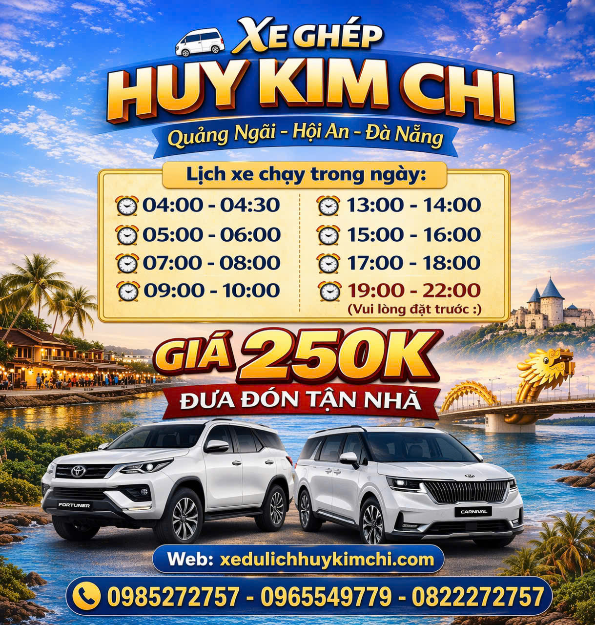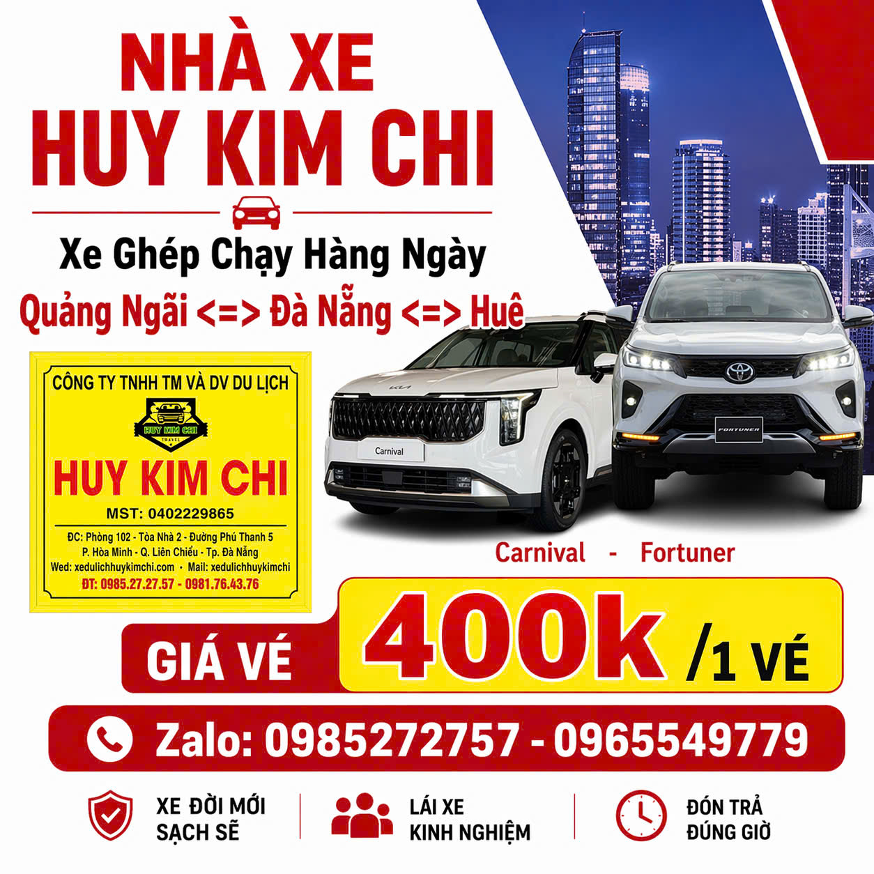 Huy Kim Chi là nhà xe lâu năm chuyên tuyến Đà Nẵng – Quảng Ngãi và bao gồm cho thuê xe ô tô theo ngày & theo tháng (có tài xế) , cho thuê xe du lịch, cho thuê xe cưới hỏi tại Đà Nẵng. Minh Huy luôn có sẵn các dòng xe ô tô từ 4 chỗ đến 7 chỗ, xe du lịch 16-30 chỗ ngồi, phục vụ khách hàng thuê xe đi du lịch hoặc công tác. Minh Huy CAM KẾT tất cả đều là xe đời mới 2022, số tự động và số sàn, xe được kiểm tra kỹ lưỡng, bảo dưỡng định kỳ và vệ sinh sạch sẽ trước khi giao cho quý khách.